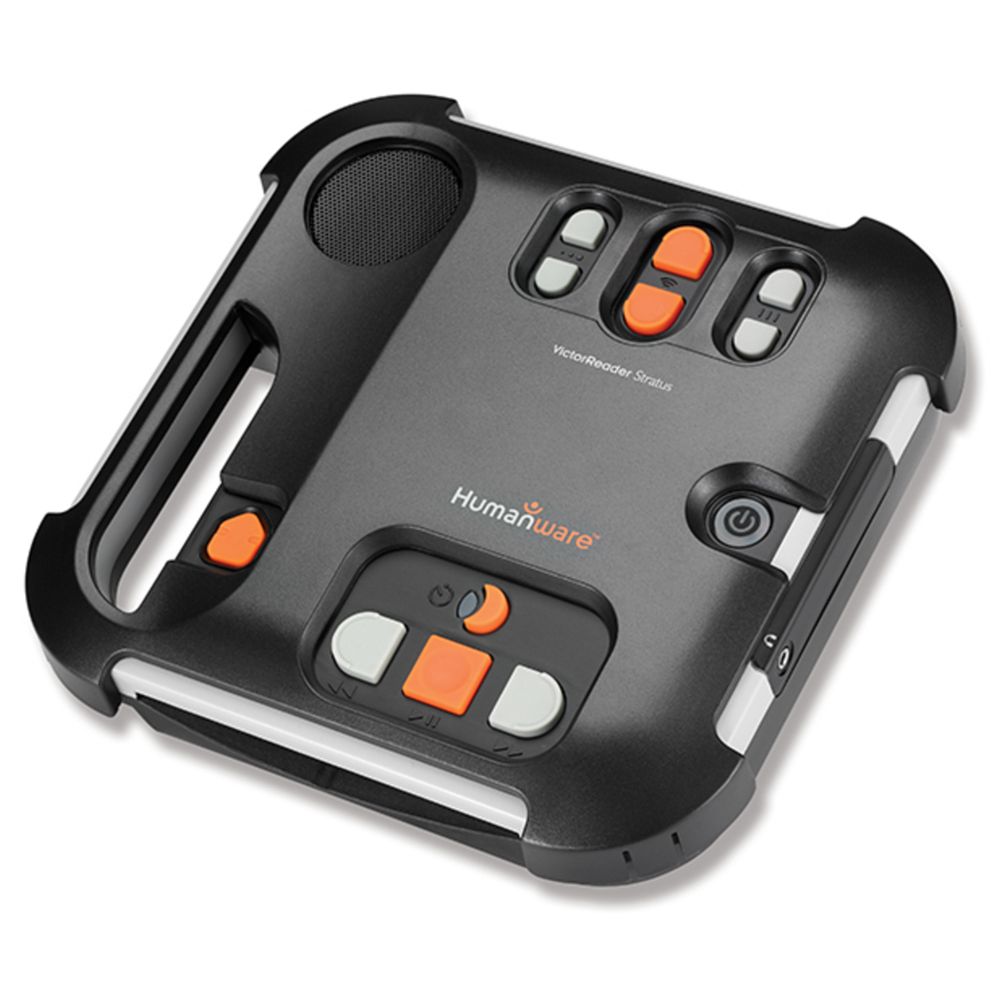 Victor Reader Stratus 4M ist ein einfach zu bedienendes, mobiles Daisy-Hörbuchabspielgerät mit großen, gut fühlbaren und kontrastreichen Tasten.